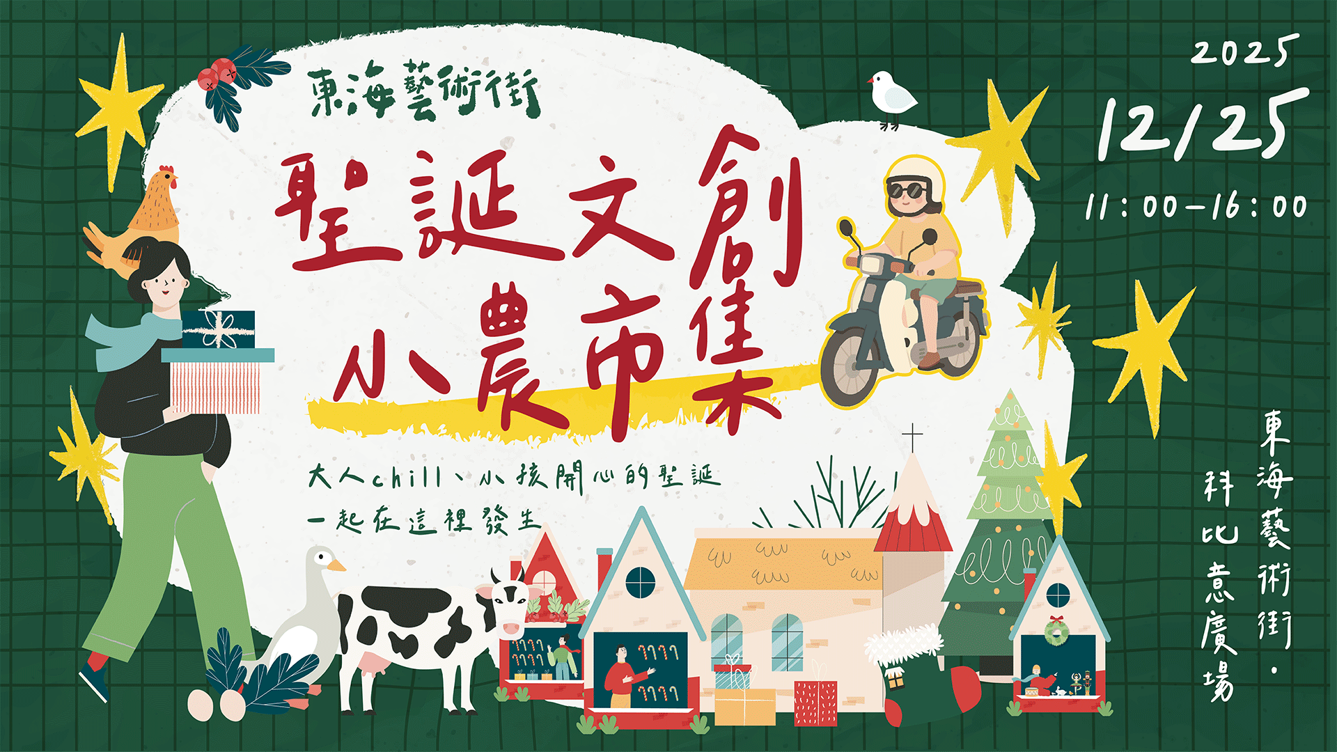 🌜時間:12/25|11:00–16:00🌜地點:東海藝術街-科比意廣場 (龍井區藝術街48-70號)